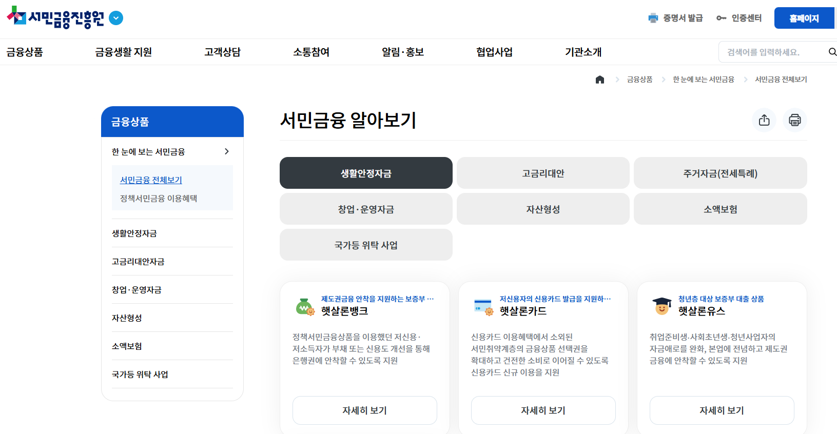 - 서민금융지원: 햇살론, 새희망홀씨 등 정책 금융 상품 제공